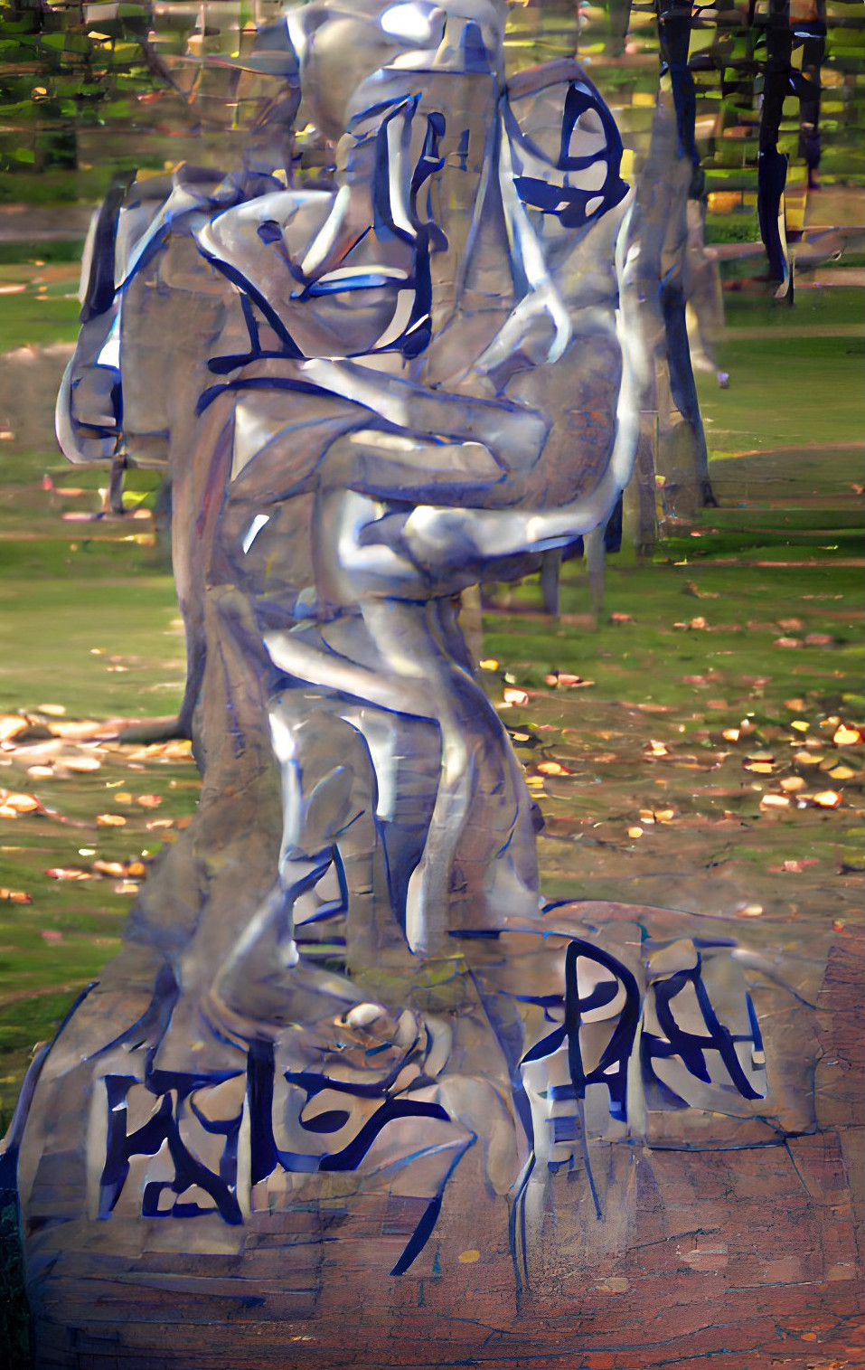 It was a twenty-minute stroll to Ventura Park, a tiny lawn with four palm trees, four benches, and a set of ceramic shapes. Someone had spray-painted numerous acronyms, icons, and vague political slurs all over the figures.